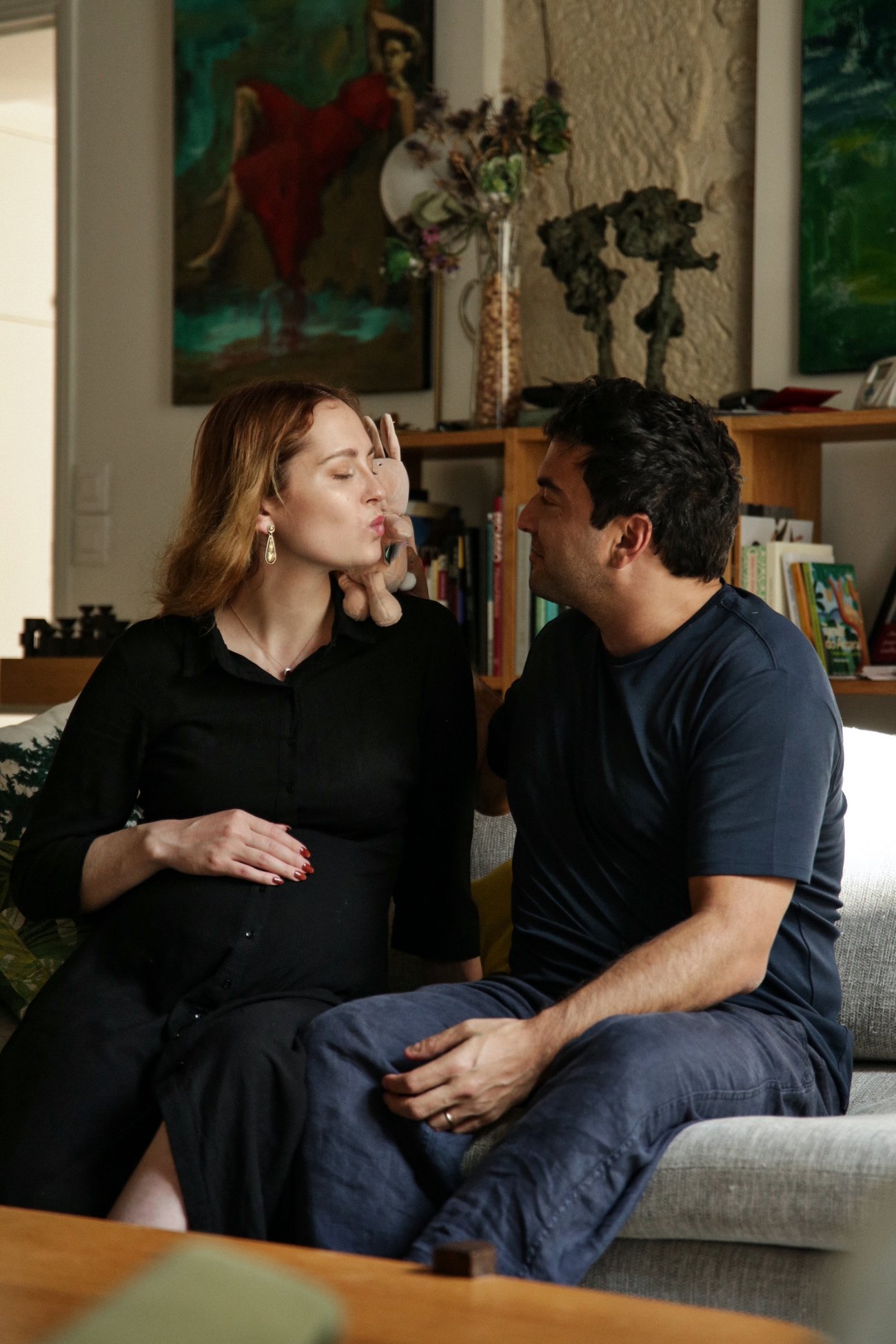 L’artiste elle-même est son motif central. Elle apparaît d’une toile à l’autre, non comme un portrait figé, mais comme une présence mouvante. Morgun ne dissocie pas la vie de l’art ; sa série la plus récente gravite autour de son monde intérieur — états émotionnels, anxiétés, souvenirs. Impressions d’enfance, réflexions sur la féminité et le divin, rapport au corps et attente de la maternité émergent avec une grande naturalité.